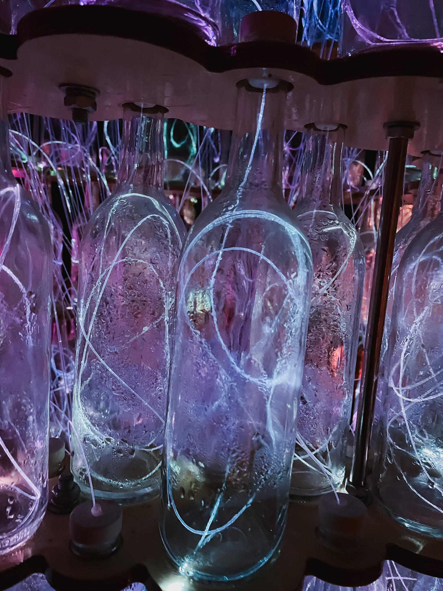 Sensorio Paso Robles was an excellent new way to walk through the rolling hills of central California and appreciate the wine-making environment. It was a bummer that it was so smokey, but that did stop us from experiencing the magic of the lights slowly becoming more apparent. By arriving before sunset, it felt like we got double the experience- the daytime showed white bulbs and stems and clear glass bottles, which was a fantastic contrast to the undulating colors after dark. Although I felt the price was a little high, I thoroughly enjoyed the experience and making a day of it by heading to a winery and dinner!